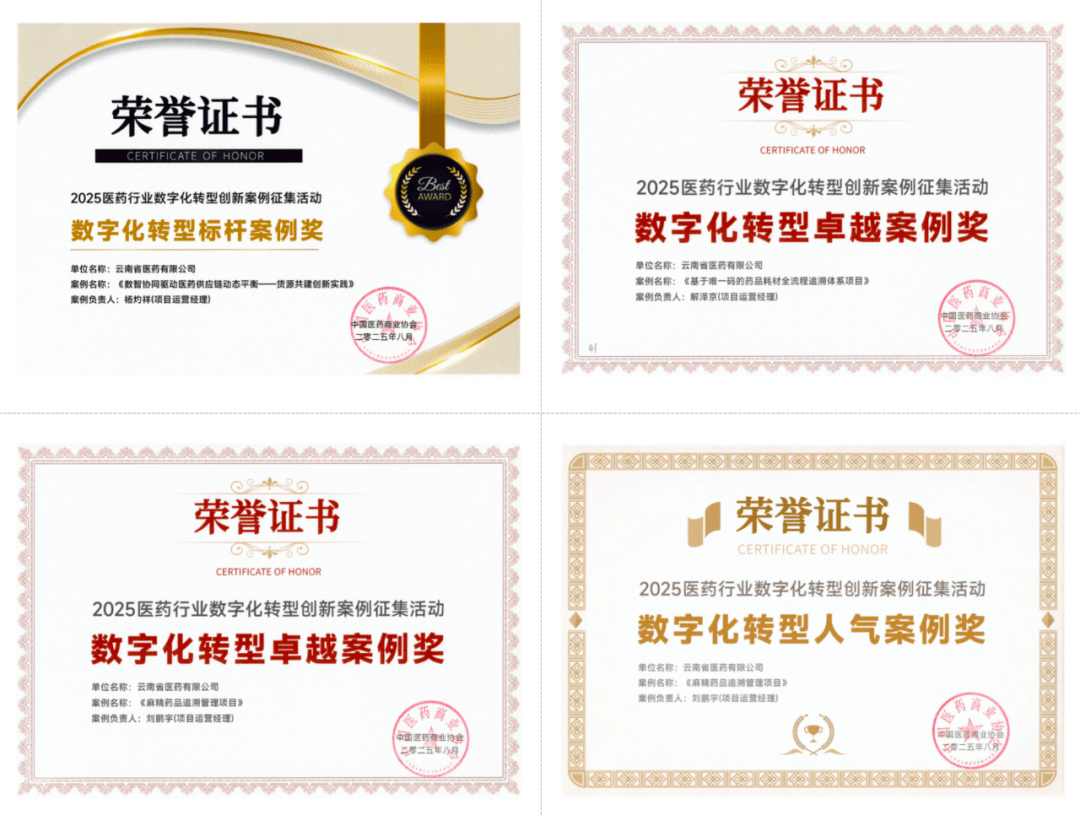 会议同时还举办了2025医药行业数字化转型创新案例发布仪式,省医药公司凭借其在推动医药产业数字化升级中的前瞻布局与卓越实践,从众多参选企业中脱颖而出,斩获4项荣誉,彰显了省医药公司在数字化领域的强大实力和对行业发展做出的价值贡献。